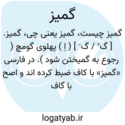 ( اسم ) پیشاب شاش بول: بیا ای پاک مغز من ببو گلزار نغز من برغم هر خری کاهل که مشک او گمیز آمد. ( دیوان کبیر )