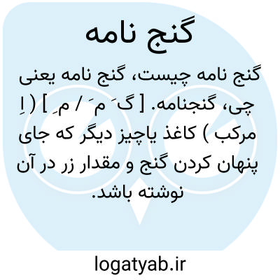 گنجنامه. [ گ َ م َ / م ِ ] ( اِ مرکب ) کاغذ یاچیز دیگر که جای پنهان کردن گنج و مقدار زر در آن نوشته باشد. ( آنندراج ) ( بهار عجم ). کاغذ یا چیز دیگر که جای پنهان کردن و کمیت زر در آن مرقوم یا منقوش باشد. ( چراغ هدایت ). کتاب گنج. فهرست گنج. قباله گنج ( ناظم الاطباء ). نامه ای که در آن مکان گنج یا گنجهایی تعیین شده است. نامه هایی قدیمی که در آن نشان و وصف گنجی و دفینه ای کرده اند: اندیشیدم که اگر از من گنجنامه ای طلب کنند و یا چیزی خواهند که وفا نتوانم کردن.... نگین انگشتری به دندان برکنم و زهر برمکم. ( تاریخ بیهقی ).