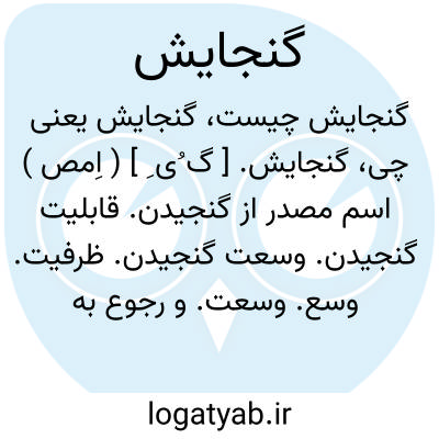 ( اسم ) ۱ - عمل گنجیدن. ۲ - ظرفیت وسعت: امیر شاه ملک بنیروی دولت قاهره در مدت سه روز قلعه ای بر افراشت که گنجایش اقامت سه هزار کس داشت. ۳ - قابلیت استعداد شایستگی. ۴ - محل گنجیدن جای گنجیدن.