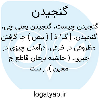 ور زآنکه نگنجند بدو در فشردشان.منوچهری.دو تیغ به هم در یک نیام نتواند بود و نتوان نهاد که نگنجد. ( تاریخ بیهقی چ ادیب ص 216 ). به باغ شادیاخ فرودآمد و لشکر چندان که آنجا گنجیدند فرودآمدند و دیگران گردگرد باغ. ( تاریخ بیهقی چ ادیب ص 565 ). قصه طویل است در این کتاب نگنجد، ام الخبائث خمر است. ( قصص الانبیاء ص 228 ).