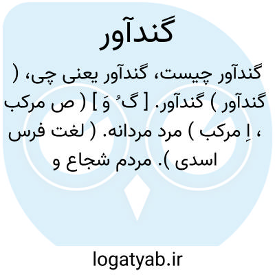 ( گندآور ) گندآور. [ گ ُ وَ ] ( ص مرکب، اِ مرکب ) مرد مردانه. ( لغت فرس اسدی ). مردم شجاع و دلاور و مردانه را گویند. ( برهان ) ( آنندراج ). جنگجو. سلحشور. سلیح شور. جنگاور. کند. کندا. گنداگر. پهلو. رزم آزما. محمّد معین در حواشی برهان قاطع نویسد: این لغت در فرهنگها بصورت «گندآور» آمده است. بعضی فضلای معاصر صورت اخیر را صحیح دانسته اند. نولدکه و هرن و هوبشمان آنرا با کاف تازی از ریشه «کند» بمعنی شجاع نقل کرده اند، ولف نیز در فهرست شاهنامه «کندآور»و «کندآوری » را با کاف تازی آورده است. بنابراین کندآور باید مرکب از: کندا ( شجاعت ) + ور ( پسوند اتصاف )باشد، نه از: کند ( شجاع ) + آور ( آورنده ) چه آور در کلمات مرکبه از اسم آید: رزم آور. تناور. دلاور. ( از حاشیه برهان قاطع چ معین ذیل کندآور ). بهار معتقد بوده اند که این کلمه از گند به معنی بیضه و بمعنی فحل و کسی که روش مردانه دارد میباشد. ( از مزدیسنا چ 1 ص 338 ج 6 ). و رجوع به سبک شناسی ج 3 ص 86 شود: