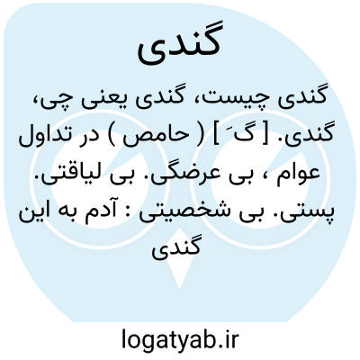 گندی. [ گ َ ] ( حامص ) در تداول عوام، بی عرضگی. بی لیاقتی. پستی. بی شخصیتی: آدم به این گندی ندیدم. رجوع به گند شود.