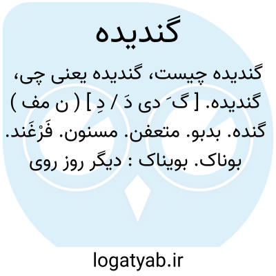 گندیده. [ گ َ دی دَ / دِ ] ( ن مف ) گنده. بدبو. متعفن. مسنون. فَرْغَند. بوناک. بویناک: دیگر روز روی او آماس کرد و آب گندیده از گوش و بینی او جاری شد. ( قصص الانبیاء منسوب به محمد جویری ص 185 ).