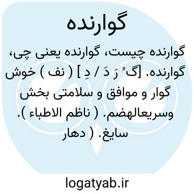 گوارنده. [گ ُ رَ دَ / دِ ] ( نف ) خوش گوار و موافق و سلامتی بخش وسریعالهضم. ( ناظم الاطباء ). سایغ. ( دهار ) ( ترجمان القرآن ). هنی ٔ. ( منتهی الارب ). مهنا. هاضم: