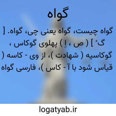 گواه. [ گ ُ ] ( ص، اِ ) پهلوی گوکاس، گوکاسیه ( شهادت )، از وی - کاسه ( قیاس شود با آ - کاس )، فارسی گواه از گوغاه از گوکاه ( شکل جنوب غربی ) «نیبرگ ص 185». ( حاشیه برهان قاطع چ معین ). شاهد. دلیل. برهان. ( حاشیه برهان ) ( ناظم الاطباء ). بیّنه. ( نصاب الصبیان ). شهید. ( منتهی الارب ) ( دهار ) ( ترجمان القرآن ). مُقیت. مهیمن. ( منتهی الارب ):