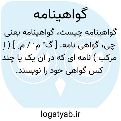 گواهی نامه. [ گ ُ م َ / م ِ ] ( اِ مرکب ) نامه ای که در آن یک یا چند کس گواهی خود را نویسند. شهادت نامه. || تصدیق نامه ای که گذراندن تحصیلات شش ساله دبیرستان یا دوره دانشگاه را گواهی کند. دیپلم. لیسانس. || تصدیق نامه.اجازه نامه برای انجام دادن هر نوع کار یا پیشه ای.