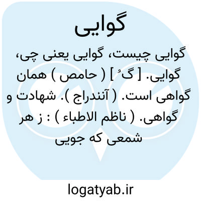 گوایی. [ گ ُ ] ( حامص ) همان گواهی است. ( آنندراج ). شهادت و گواهی. ( ناظم الاطباء ):