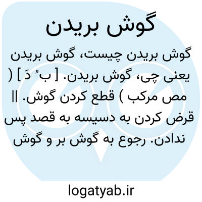 ( مصدر ) ۱ - قطع کردن گوش کسی. ۲ - بحیله پول و مال دیگری را گرفتن مغبون کردن در معامله: پس این دو برادر هم گوش ترا بریده اند ?