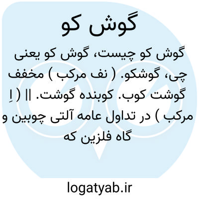 گوشکو. ( نف مرکب ) مخفف گوشت کوب. کوبنده گوشت. || ( اِ مرکب ) در تداول عامه آلتی چوبین و گاه فلزین که کوفتن دیگ افزار آبگوشت را بکار است. رجوع به گوشت کوب شود.