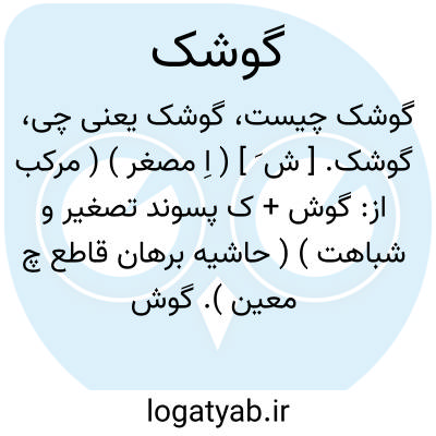 گوشک. [ ش َ ] ( اِ مصغر ) ( مرکب از: گوش + ک پسوند تصغیر و شباهت ) ( حاشیه برهان قاطع چ معین ). گوش خرد. گوش کوچک. تصغیر گوش باشد که به عربی اذن خوانند. || دو گوشت پاره ای را گویند که بر سر حلقوم آدمی که مجرای طعام است می باشد و آن را به عربی لوزتان خوانند. ( برهان ) ( آنندراج ). ملازه که از کام فرود آمده باشد. ( رشیدی ). و در فرهنگ دو گوشت پاره مانند دو بادام که درون دهن بر سر حلقوم می باشد و به تازی لوزتان خوانند. ( رشیدی ). || و صاحب ملازه را نیز گویند و او را کام فرود آمده هم می گویند. ( برهان ) ( آنندراج ). || گوشه اندام زن. ( رشیدی ).