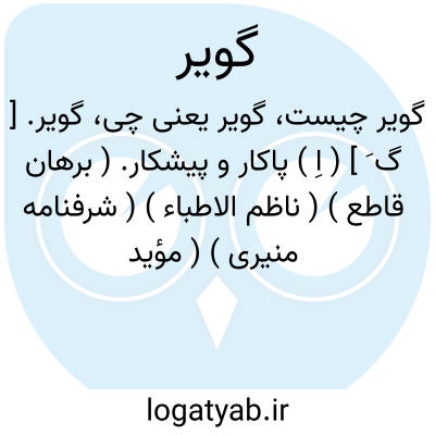 گویر. [ گ َ ] ( اِ ) پاکار و پیشکار. ( برهان قاطع ) ( ناظم الاطباء ) ( شرفنامه منیری ) ( مؤید الفضلاء ). || سراب و آن شوره زمینی است در صحرا که از دور به آب میماند. ( برهان قاطع ) ( آنندراج ) ( غیاث اللغات ) ( شرفنامه منیری ) ( فرهنگ شعوری ). گوراب. ( مجمعالفرس ). ظاهراً در این معنی و معنی بعد مصحف کویر است. || در شرح نصاب به معنی زمین هموار است. ( نصاب ) ( آنندراج ). || مطلق صحرا. ( برهان قاطع ) ( غیاث اللغات ). رجوع به کویر شود.
