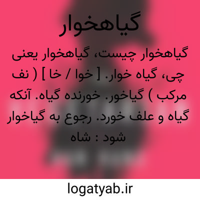 ۱ - ( صفت ) خورند. گیاه. ۲ - جانوری که خوراکش منحصرا گیاهان و علفها باشد علف خوار جمع: گیاه خواران. یا گیاه خواران. ( جمع گیاه خوار ) جانورانی که منحصرا تغذی. آنها از انساج گیاهی باشد از قبیل دامها و انواع گوزنها و آهو ها و برخی حشرات علف خواران. ۳ - ( اسم ) علف زار مرتع: چون ربیع بودی بگیاه خوار از آنجا برفتندی.