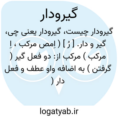 ( اسم ) ۱ - اخذ و ضبط. ۲ - غوغا و همهم. جنگجویان: رخنه در کوه افکند که ? کروفرت لرزه بر چرخ افکند چه ? گیرودارت. ( انوری ) ۳ - جنگ حرب رزم. ۴ - فرماندهی حکمرانی رتق و فتق امور: ترا زین همه شاهی و گیرودار نخواهد بدن بهره جز تیرودار. یا با گیرودار. با اشتلم با اهن و تلپ: یکی نامه بنوشت با گیرودار پر از گرز و شمشیر و از کارزار. یا روز گیرودار. روز رزم روز معرکه.