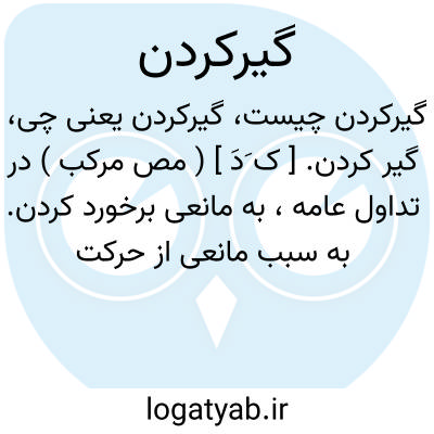 - گیر کردن چیزی در جایی؛ فروماندن وبیرون نیامدن چیزی در جائی، همچون گیر کردن لقمه درگلو، گیر کردن سنگ در آبراهه. مثال: ته دیگ در گلوی حاجب الدوله گیر کرد و مرد.