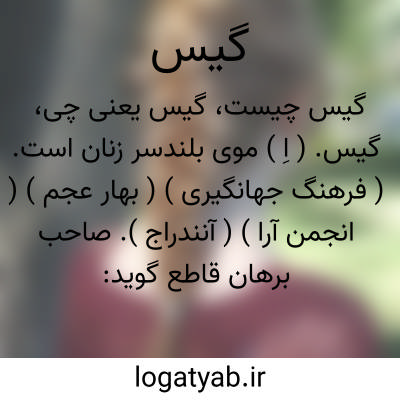 ( اسم ) موی بلند سرزنان: نیز تا با حیض بینی گیس با نوراسزاست کز همه با بی بد است این بانوی مطعون کور. ( خاقانی لغ. ) یا گیس ساختگی. گیس مصنوعی. یا گیس عاریه. گیس مصنوعی.