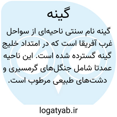 گینه (منطقه). گینه نام سنتی برای ناحیه ای از سواحل غرب آفریقا است که در امتداد خلیج گینه قرار دارد. این ناحیه به صورت جنگلی گرمسیری یا گرم دشت های طبیعی مرطوب است که در امتداد ساحل ادامه یافته و در شمال با ساحل صحرا هم مرز است.