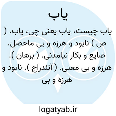 یاب. ( ص ) نابود و هرزه و بی ماحصل. ضایع و بکار نیامدنی. ( برهان ). هرزه و بی معنی. ( آنندراج ). نابود و هرزه و بی معنی. ( جهانگیری ). نابودو ضایع و فانی و بی فایده و بیهوده و هرزه و ناچیز وبی ثمر و بی حاصل و بی سود. ( ناظم الاطباء ):