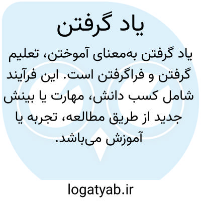 یاد گرفتن به‌معنای آموختن، تعلیم گرفتن و فراگرفتن است. این فرآیند شامل کسب دانش، مهارت یا بینش جدید از طریق مطالعه، تجربه یا آموزش می‌باشد. یادگیری به‌عنوان یکی از اساسی‌ترین توانایی‌های انسان، نقش محوری در رشد فردی و اجتماعی ایفا می‌کند. این مفهوم در زبان فارسی با واژه‌های هم‌معنای دیگری همچون آموختن، تعلیم گرفتن و فراگرفتن نیز بیان می‌شود. در متون کلاسیک فارسی، یادگیری همواره به‌عنوان ارزشی اصیل مورد تأکید بوده است، چنان‌که شاعران و اندیشمندان، نیکنامی و فرهنگ را در گرو یادگیری دانسته‌اند. فرآیند یادگیری در گستره‌ای وسیع از دانش‌های نظری تا مهارت‌های عملی را دربرمی‌گیرد و در سطوح مختلف فردی و اجتماعی تحقق می‌یابد. اهمیت این فرآیند به‌حدی است که می‌توان آن را زیربنای توسعه فرهنگی و پیشرفت جامعه دانست.