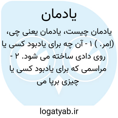 (اِمر. ) ۱ - آن چه برای یادبود کسی یا روی دادی ساخته می شود. ۲ - مراسمی که برای یادبود کسی یا چیزی برپا می شود.