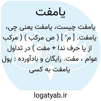 یامفت. [ م ُ ] ( ص مرکب ) ( مرکب از یا حرف ندا + مفت ) در تداول عوام، مفت. رایگان و بادآورده: پول یامفت به کسی نمیدهیم.