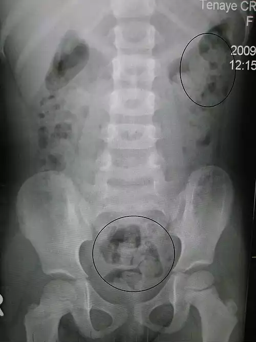 ۱- خشکی. ۲- خشکی مزاج دراین عارضه ماد. دفعی در روده ها خشکی و سفتی خاصی پیدا میکند و دفع آنها باصعوبت انجام میشود.