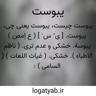 (یُ سَ ) [ ع. یبوسة ] ۱ - (اِمص. ) خشکی، عدم رطوبت. ۲ - در فارسی: خشکی مزاج و کار نکردن شکم.