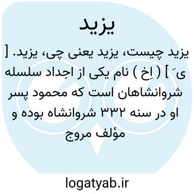 یزید. [ ی َ ] ( اِخ ) نام یکی از اجداد سلسله شروانشاهان است که محمود پسر او در سنه 332 شروانشاه بوده و مؤلف مروج الذهب مسعودی معاصر با وی بوده و از او نام برده است. ( یادداشت مؤلف ).