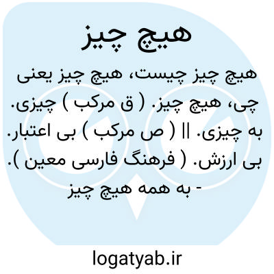 هیچ چیز. ( ق مرکب ) چیزی. به چیزی. || ( ص مرکب ) بی اعتبار. بی ارزش. ( فرهنگ فارسی معین ).