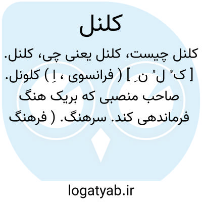 کلنل. [ ک ُ ل ُ ن ِ ] ( فرانسوی، اِ ) کلونل. صاحب منصبی که بریک هنگ فرماندهی کند. سرهنگ. ( فرهنگ فارسی معین ).