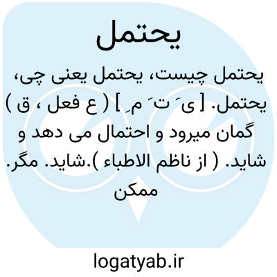 یحتمل. [ ی َ ت َ م ِ ] ( ع فعل، ق ) گمان میرود و احتمال می دهد و شاید. ( از ناظم الاطباء ).شاید. مگر. ممکن است. بوکه. یمکن. ظاهراً. همانا. تواند بود. تواند بودن. ( یادداشت مؤلف ):