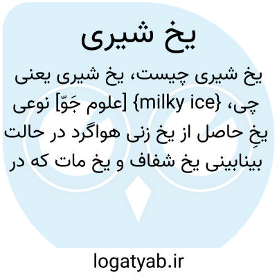 {milky ice} [علوم جَوّ] نوعی یخِ حاصل از یخ زنی هواگرد در حالت بینابینی یخ شفاف و یخ مات که در دمای 4- تا 15- درجۀ سلسیوس تشکیل می شود