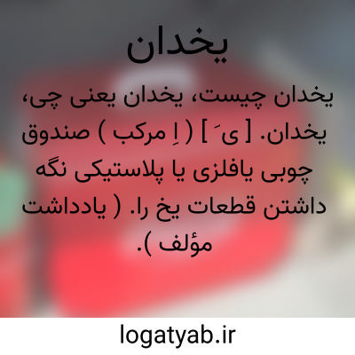۱. جای یخ، یخچال، صندوقی که در آن یخ بگذارند.