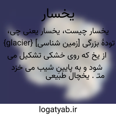 {glacier} [زمین شناسی] تودۀ بزرگی از یخ که روی خشکی تشکیل می شود و به پایینِ شیب می خزد متـ. یخچال طبیعی