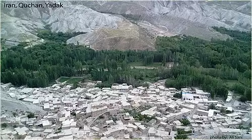 این روستا در ۴۵ کیلومتری شمال شرق قوچان واقع شده است و سرچشمه شاخه اصلی رودخانه اترک در این روستا واقع شده است. شغل مردم روستا بیشتر کشاورزی و دامداری است. از مناطق دیدنی این روستا می توان به آرامگاه امامزاده حجی، دره زیبای یدک، آبشار زیو، آبشار گول و چشمه های متعدد واقع در دامنه رشته کوه های هزارمسجد اشاره کرد. آب و هوای روستا کوهستانی و سرد است.