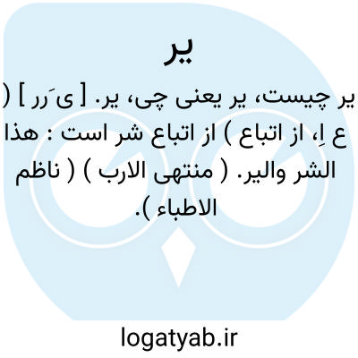 یر. [ ی َرر ] ( ع اِ، از اتباع ) از اتباع شر است: هذا الشر والیر. ( منتهی الارب ) ( ناظم الاطباء ).