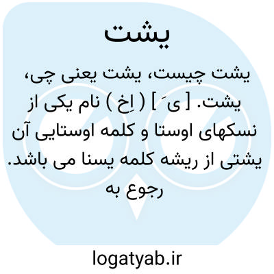 یشت. [ ی َ ] ( اِخ ) نام یکی از نسکهای اوستا و کلمه اوستایی آن یشتی از ریشه کلمه یسنا می باشد. رجوع به یشتها شود.