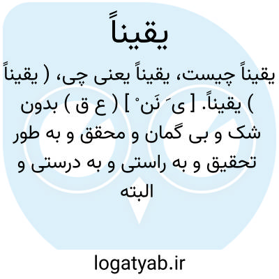 ( یقیناً ) یقیناً. [ ی َ نَن ْ ] ( ع ق ) بدون شک و بی گمان و محقق و به طور تحقیق و به راستی و به درستی و البته و بی شبهه. ( ناظم الاطباء ). قطعاً و حتماً و بی شبهه و بی گمان و به طور قطع و یقین. ( یادداشت مؤلف ).