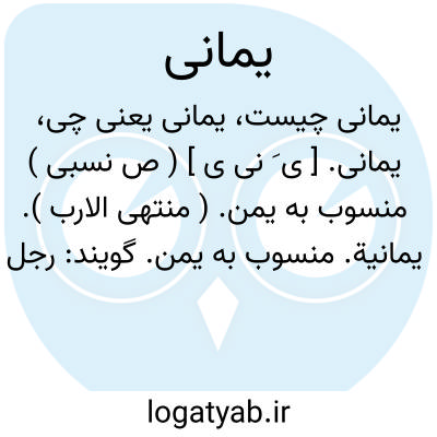 (صفت ) منسوب به یمن یمنی. ۱- متعلق به یمن سخته دریمن: یکی زرنام ملک بر نبشته دگر آهن آب داده یمانی. (دقیقی ) ۲- از مردم یمن اهل یمن.