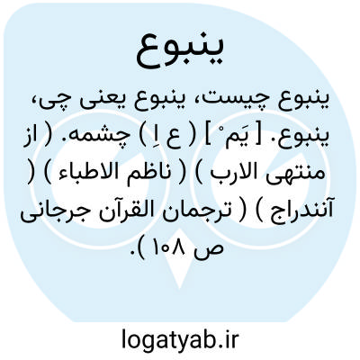 [ویکی اهل البیت] ینبوع به معنای چشمه است؛ و به صورت «ینابیع» جمع بسته می شود.