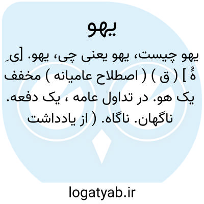 یهو. [ی ِ هَُ ] ( ق ) ( اصطلاح عامیانه ) مخفف یک هو. در تداول عامه، یک دفعه. ناگهان. ناگاه. ( از یادداشت مؤلف ).