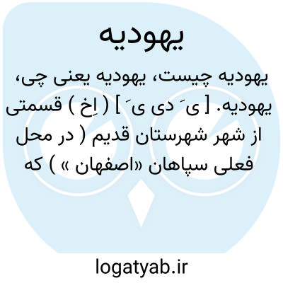 یهودیه. [ ی َ دی ی َ ] ( اِخ ) قسمتی از شهر شهرستان قدیم ( در محل فعلی سپاهان «اصفهان » ) که یهودیها در آن ساکن بودند. ( یادداشت مؤلف ). محله ای است در اصفهان. ( از معجم البلدان ). قسمتی از اصفهان. ( دمشقی ). و رجوع به نزهةالقلوب چ اروپا مقاله سوم ص 50 شود.