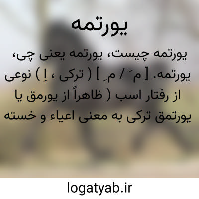 یورتمه. [ م َ / م ِ ] ( ترکی، اِ ) نوعی از رفتار اسب ( ظاهراً از یورمق یا یورتمق ترکی به معنی اعیاء و خسته کردن ). ( یادداشت مرحوم دهخدا ). یرتمه. چهارنعل رفتن اسب. ( ناظم الاطباء ). از مصطلحات اسب تازان باشد. ( آنندراج ). نوعی راه رفتن اسب که آن را یرغه نیز گویند. ( فرهنگ لغات عامیانه ). و رجوع به یرتمه شود.