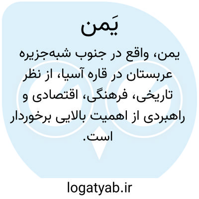 یمن یا عربستان خوشبخت. کشور کوچک مستقلی است در جنوب غربی شبه جزیر. عربستان کنار دریای احمر که در سال ۱۹۳۴ بموجب پیمانی که با انگلستان بست دارای استقلال گشت