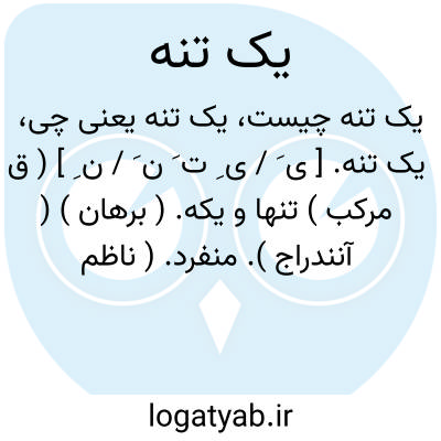 یک تنه. [ ی َ / ی ِ ت َ ن َ / ن ِ ] ( ق مرکب ) تنها و یکه. ( برهان ) ( آنندراج ). منفرد. ( ناظم الاطباء ). به تن واحد. انفراداً. به تنهایی. وحیداً. فریداً. ( یادداشت مؤلف ):