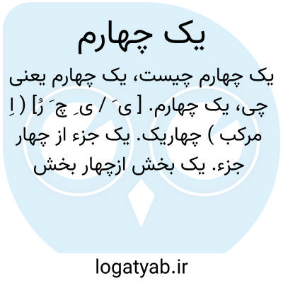 یک چهارم. [ ی َ / ی ِ چ َ رُ] ( اِ مرکب ) چهاریک. یک جزء از چهار جزء. یک بخش ازچهار بخش چیزی. ربع. یک ربع. ( از یادداشت مؤلف ).