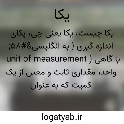 (یا: واحد) کمیتی استاندارد، برای سنجش سایر کمیت ها. سامانه ها وسیستم های متعددی از یکاها ایجاد شده اند. برخی از واحدهای باستانی، مانند روز، پا، و پوند، هنوز هم به کار می روند. یکاهای سامانۀ بین المللی، SI، که آخرین شکل سیستم متریکاست، کاربرد گسترده ای در علوم دارند. نیز ← سامانۀ بین المللی یکاها