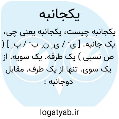 یک جانبه. [ ی َ / ی ِ ن ِ ب َ / ب ِ ] ( ص نسبی ) یک طرفه. یک سویه. از یک سوی. تنها از یک طرف. مقابل دوجانبه: دوستی یک جانبه نتواند بود. ( از یادداشت مؤلف ).