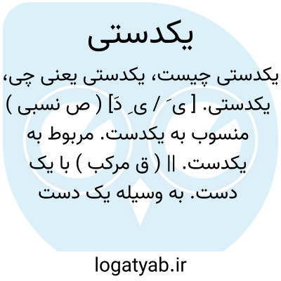 ۱- (صفت ) منسوب به یکدست ۲- بایکدست بوسیل. یکدست.یا یکدستی زدن به کسی. مطلبی را که در صحت آن شک دارند به طور قاطع به کسی گفتن و بدین وسیله او را وادار به اعتراف کردن و اصل مطلب و صورت درست آنرا از زبان طرف شنیدن. یا یکدستی گرفتن کسی را. اورابی اهمیت پنداشتن کوچک و بی ارزش پنداشتن.