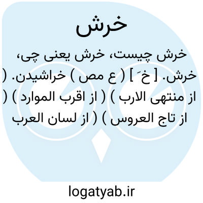 خرش. [ خ َ ] ( ع مص ) خراشیدن. ( از منتهی الارب ) ( از اقرب الموارد ) ( از تاج العروس ) ( از لسان العرب ). مرحوم دهخدا این مصدر را تعریب مصدر خراشیدن فارسی دانسته اند. || کسب برای عیال خود کردن و طلب رزق نمودن.( منتهی الارب ) ( از اقرب الموارد ) ( از تاج العروس ) ( از لسان العرب ): خرش لعیاله. || چوب سرکج بشتر زدن و آنرا بسوی خود کشیدن ( از منتهی الارب ) ( از اقرب الموارد ) ( از تاج العروس )، منه: خرش البعیر. || ( ص ) مرد که خوابش نیاید. ( منتهی الارب ) ( از اقرب الموارد ) ( از تاج العروس ) ( از لسان العرب ).
