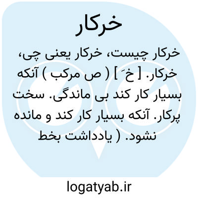خرکار. [ خ َ ] ( ص مرکب ) آنکه بسیار کار کند بی ماندگی. سخت پرکار. آنکه بسیار کار کند و مانده نشود. ( یادداشت بخط مؤلف ). || کسی که کارش حمل هیزم و خاک کوه با الاغ و اسب باشد ( در لهجه گناباد ).